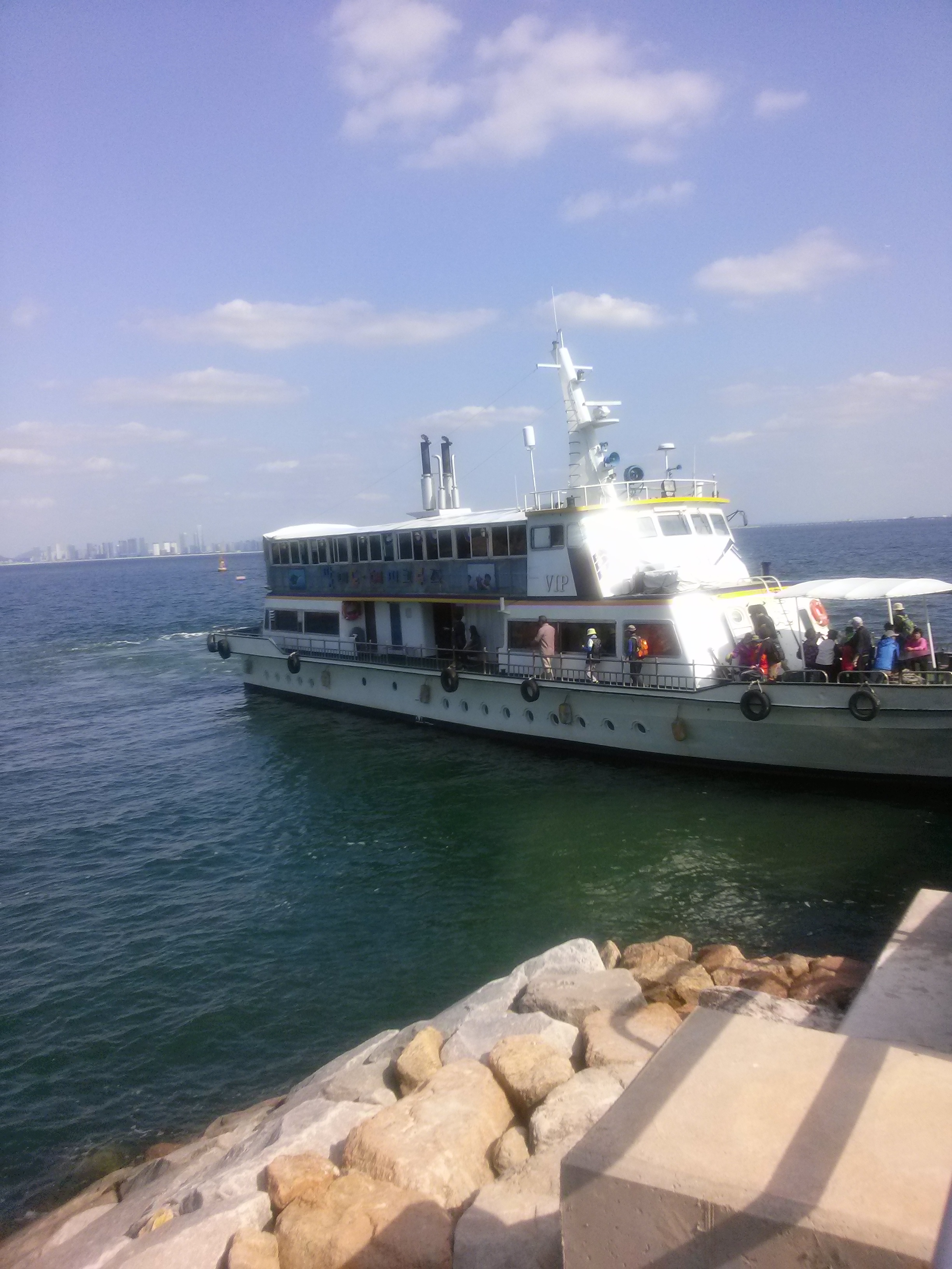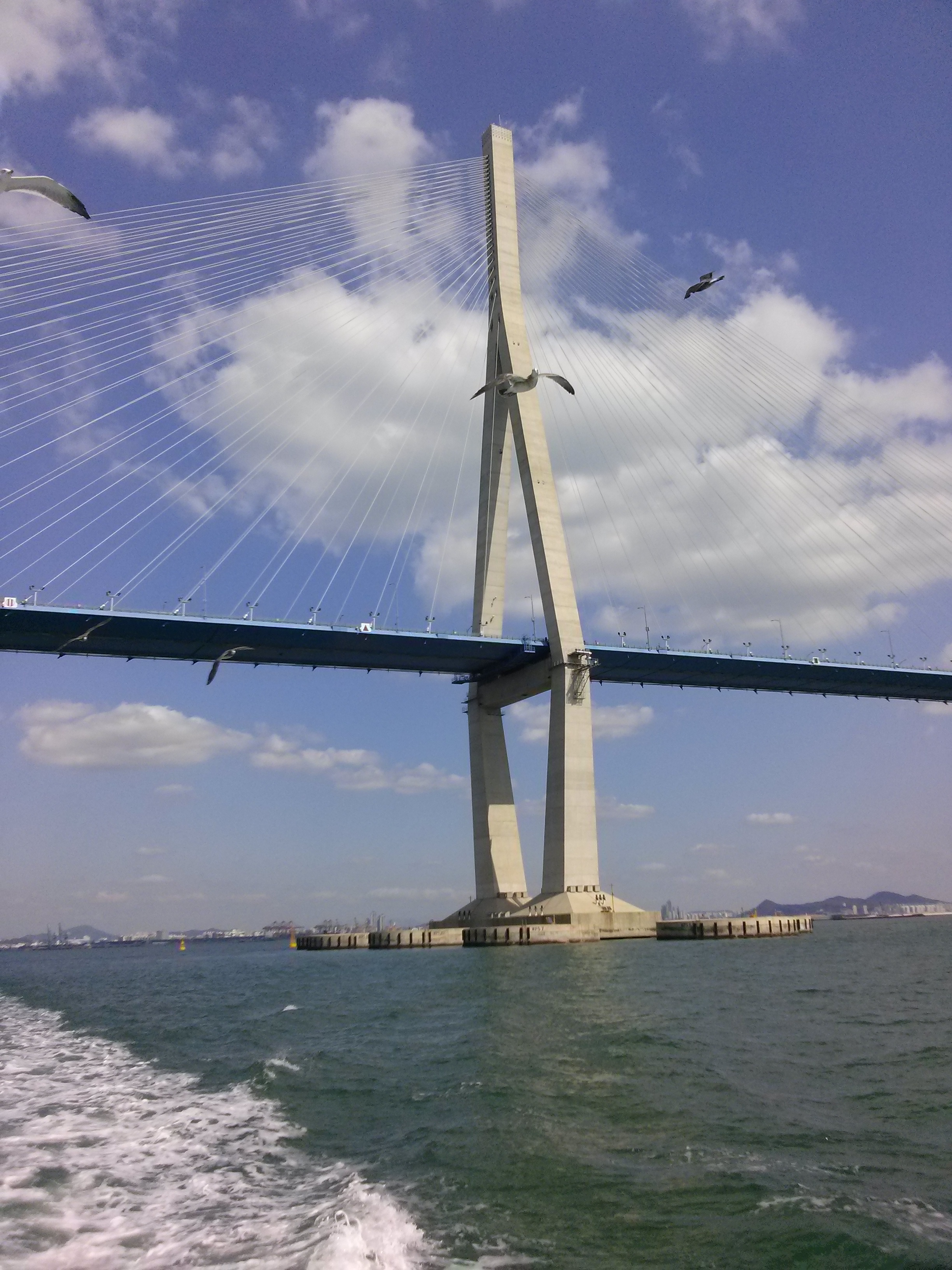 인천대교는 18.38km로 유람선은 인천대교 가운데로 지나간다.
